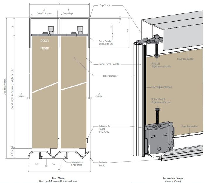 • Can also be used with 19mm thick timber doors by excluding the mirror framing and fixing the